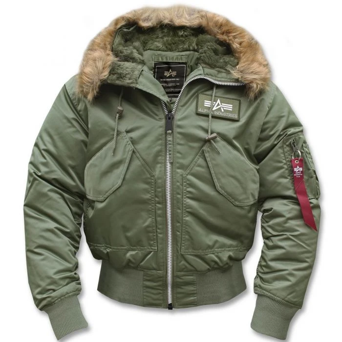 Die Fliegerjacke von Alpha Industries ist ein absoluter Hingucker und vor allem für die kalte Jahreszeit ein idealer Begleiter. Der schwere Frontreißverschluss ist mit einer gesteppten Reißverschlussummantelung mit Diagonalnähten versehen, so wird ein Einklemmen des Reißverschlusses vermieden. Stauraum bieten die beiden geräumigen Pattentaschen mit Klettverschluss auf der Front sowie zwei Innentaschen mit Reißverschluss, Armbüro mit Geldscheinfach und ein Stiftehalter. Der legere Kragen hat eine gesteppte Fütterung, die schön warmhält. Außerdem ist die Jacke mit einer Kapuze inklusive abnehmbarem Fellkragen ausgestattet.