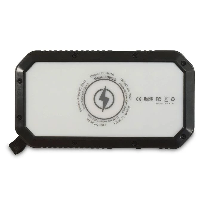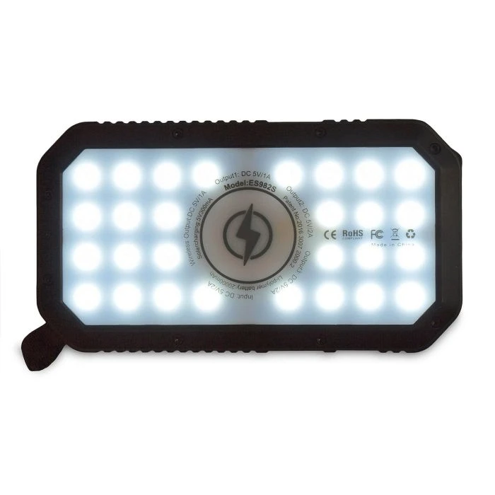 Die Powerbank 20 bietet dir eine Kapazität von 20.000 mAh. Damit sind bis zu 5 Ladungen eines Smartphones möglich. So hast du Energie für Smartphone, Tablet, PC oder Digitalkamera und noch dazu Beleuchtung – egal wo du bist. Die zusätzliche Funktion Qi (wireless charging) ermöglicht über Induktion ein kabelloses Laden (nur bei Qi-fähigen Geräten). Das robuste und spritzwassergeschützte Gehäuse schützt die Powerbank vor Schäden. Die Anschlüsse sind durch eine Silikonkappe gegen Spritzwasser und Staub geschützt. Das Gerät kann via Micro-USB oder über Solar (abhängig von der Intensität des Sonnenlichts, für Notfälle gedacht) wieder aufgeladen werden. Zusätzlich ist ein leuchtstarkes LED-Display, dimmbar mit 500 Lumen eingebaut, mit einer Brenndauer bis zu 15 Stunden, dass du als Taschenlampe oder Beleuchtung verwenden kannst. Die Schlaufe am Gehäuse ermöglicht es die Powerbank im Zelt aufzuhängen oder tagsüber am Rucksack zu fixieren, damit der Akku während des Wanderns geladen werden kann. Die Statusanzeige in Prozent zeigt den geladenen Zustand an. Die Energie wird in einem hochwertigen Lithium-Polymer-Akku mit langer Lebensdauer gespeichert. Die Powerbank verfügt über 3 Standard USB-Anschlüsse, die das Laden mehrerer Geräte gleichzeitig ermöglichen. Die Powerbank ist kompatibel mit allen Smartphones, Tablets und anderen USB-betriebenen Geräten mit einem 5V-Ladeinput. Das Ladekabel ist im Lieferumfang vorhanden.
