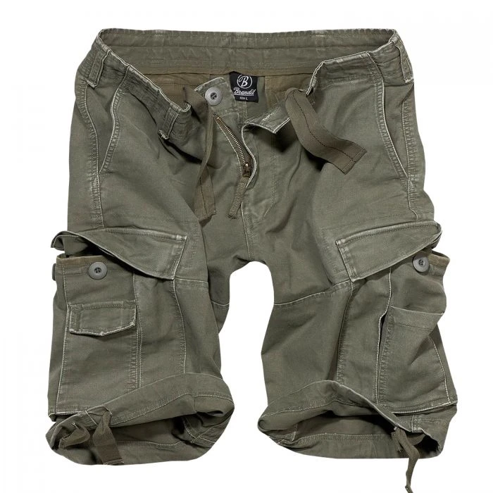 Die Basic Vintage Shorts Cargo von Brandit ist der Klassiker unter den Cargo-Shorts. Maschinell wurde die Hose so bearbeitet, dass sie – typisch Vintage-Style – abgetragen und verwaschen aussieht. Der robuste Baumwollstoff macht die Hose zu jedem Abenteuer tragbar. Die großen Beintaschen mit nochmals extra aufgenähten Einschubtaschen bieten Platz für Vieles. Seitlich hat die Shorts zwei schräge Einschubtaschen zwei zusätzliche Gesäßtaschen mit Knopfverschluss. Im Bund und am Beinabschluss sind Tunnelzüge eingearbeitet.