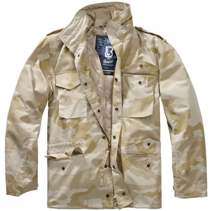 Brandit hat die beliebte M65 Standard Jacke mit der Limited Edition als robuste Ripstop-Version auf den Markt gebracht. Natürlich hat Brandit dabei keines der klassischen Details, welche charakteristisch für die Feldjacke sind, ausgelassen. Die warme Innenjacke aus Polyester ist gesteppt und ausknöpfbar. Die Außenjacke kann ohne Futter auch an kühlen Sommertagen getragen werden. Zudem befindet sich eine versteckte Kapuze im Kragen. Für die perfekte Passform gibt es innenliegende Hüftbänder zur Weitenregulierung. Jede Menge Stauraum bieten die 2 Brust-/Hüftpattentaschen mit Druckknopfverschluss. Natürlich sind die Schulterklappen mit Knopfverschluss und der Ärmelabschluss mit verstellbarem Klett bei der M-65 unabkömmlich.