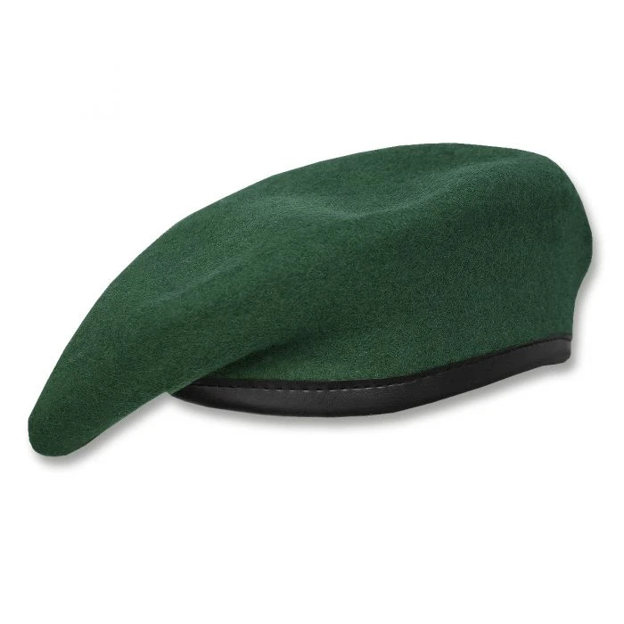 Das Standard Barett in Bundeswehr-Form mit zwei Belüftungsösen, innenliegendem Verstärkungseinsatz auf der linken Seite sowie in Kunstleder eingefasster Saumkante mit Zugband welches als Schweißband fungiert.
