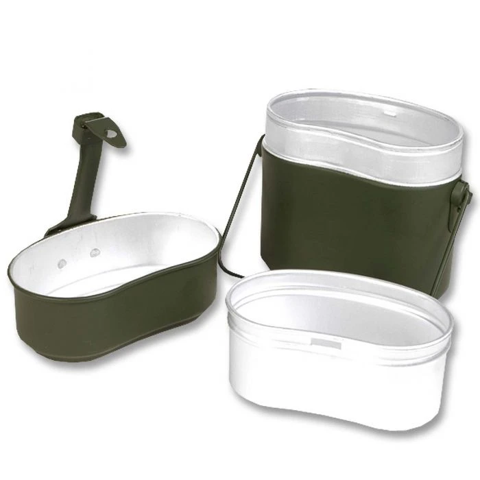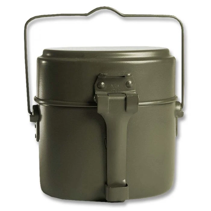 Leicht und handlich! Das nach Bundeswehr TL gefertigte BW Kochgeschirr mit Klappbügel welches in 3 Teile auseinander genommen werden kann. Maße: ca. 165 x 187 x 112 cm. Material: Aluminium.