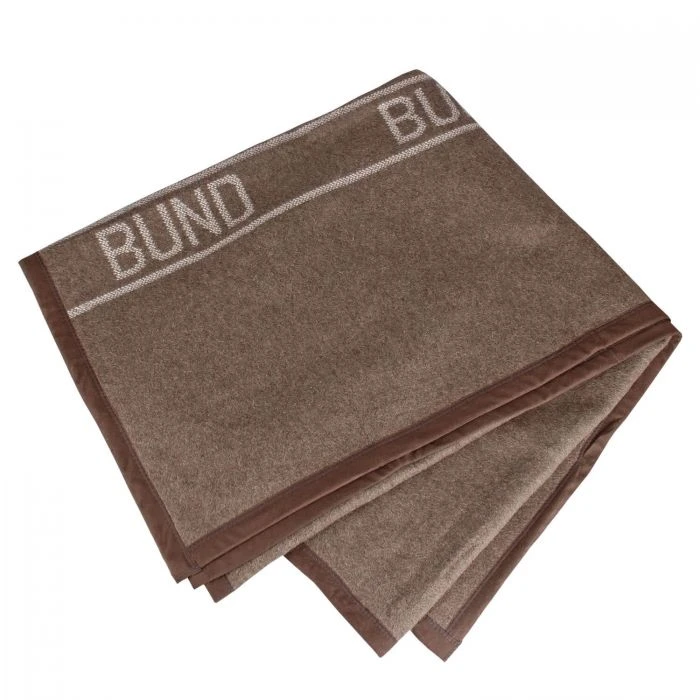 Robuster, vielseitig einsetzbarer Nachbau der Bundeswehr Wolldecke mit dem typischen Schriftzug BUND.