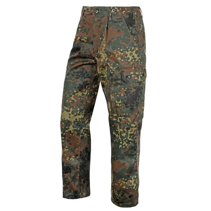 Die Bundeswehr Feldhose von bw-online-shop zeichnet sich vor allem durch ihr schweres, strapazierfähiges Material aus, welches die Hose besonders langlebig macht. Zwei seitliche Einschubtaschen, zwei aufgesetzte Beintaschen mit Druckknopfverschluss sowie eine Gesäßtasche mit Knopfverschluss bieten ausreichend Stauraum für wichtige Utensilien. So wie das Original verfügt auch unser Nachbau der Bundeswehr Feldhose über Hosenträgerknöpfe am Bund. Die Bundeswehr Feldhose ist nicht nur im Einsatz beliebt, sie gewinnt auch in den Bereichen Freizeit und Hobby immer mehr an Beliebtheit.
