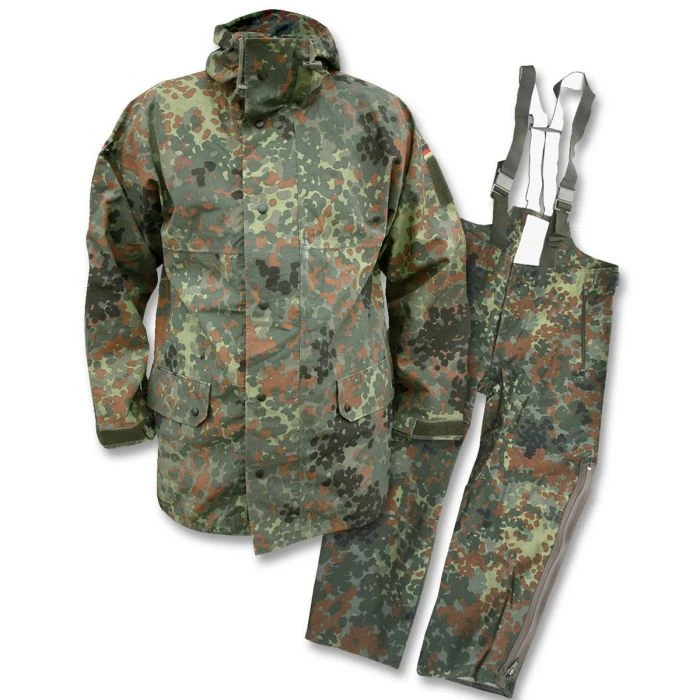 Beliebt und optimal bei Wind und Wetter. Der BW Goretex Anzug bestehend aus Goretex Jacke und Hose. Jacke mit hochschließendem Kragen, verdecktem Frontreißverschluss, zwei Taschen mit Patte und Druckknöpfen, regulierbare Taillenweite, Kapuze mit Zugband, sowie durch Klett regulierbare Ärmelabschlüsse. Die Hose kann in der Weite durch Klett am Bund reguliert werden. Reißverschlüsse an den Beinenden für einfaches An- und Ausziehen.
