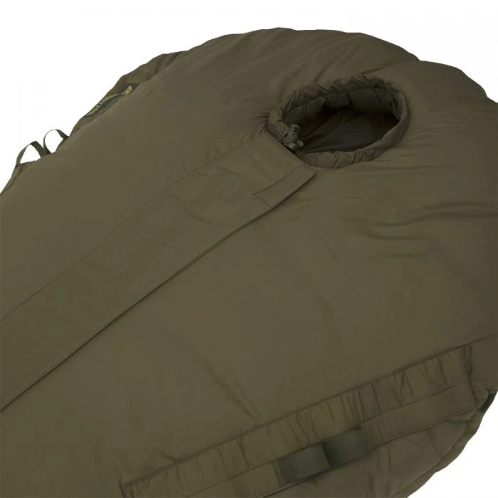 Dieser Hochleistungs-Winterschlafsack wurde speziell für militärische Zwecke entwickelt. Er verfügt über eine großzügige Wärmeleiste auf der Innenseite des Reißverschlusses, um einen Wärmeverlust zu verhindern. Die Reißverschluss-Abdecklasche halten Wind und Nässe draußen. Der Survival One verfügt über einen Differenzialschnitt, was bedeutet, dass die Isolationsschicht großzügiger konstruiert wird. Das gewährleistet den größtmöglichen Loft in allen Bereichen und in jeder Schlafposition. Bewegung im Schlafsack schafft Druckpunkte, mit dem Differentialschnitt wird allerdings nur die innerste Schicht komprimiert. Durch das Öffnen des Reißverschlusses im Fußbereich, kann das Fußende im hinteren Bereich fixiert werden. Dadurch wird optimale Bewegungsfreiheit gewährleistet und der Schlafsack kann auch wie ein Mantel getragen werden. Die Ärmel werden zwischen den Isolationsschichten verstaut.