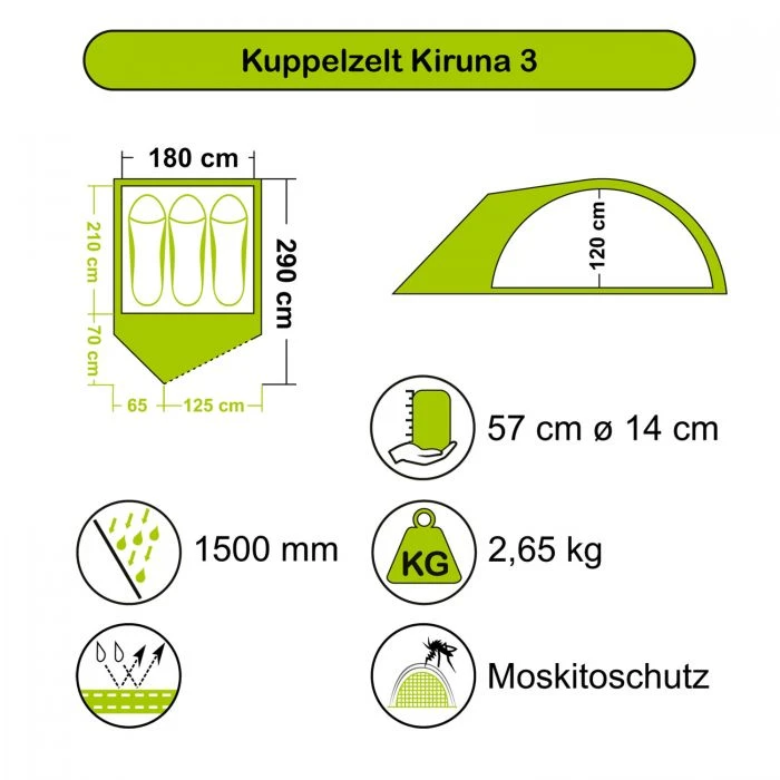 Material Außenzelt: 190T Polyester PU, 1500 mm