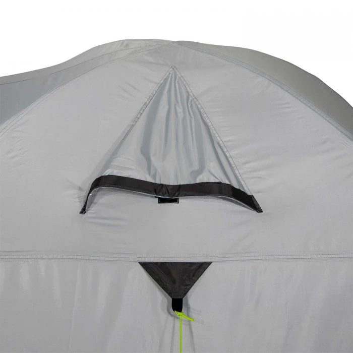 Das Zelt „Nevada“ von High Peak ist ein Kuppelzelt mit Vorbau, mit PE Boden, Fibergglas-Gestänge und atmungsaktivem Polyester Material. Der Eingang ist wettergeschützt und der Vorbau bietet Stauraum. Das Innenzelt ist abgedunkelt mit Wannenboden, Innentaschen und einem Lampenhalter.