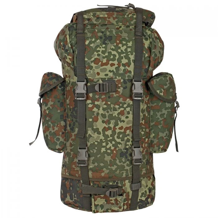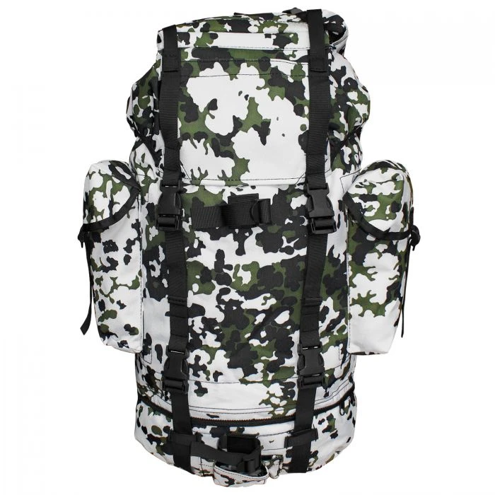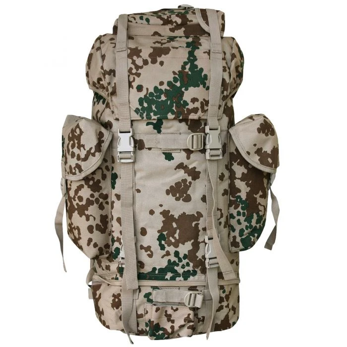 Der Kampfrucksack groß Typ BW ist einer der beliebtesten Trekking-, Wander- und Outdoor Rucksack mit großem Hauptfach und variablem Zwischenboden. Der Rucksack besitzt eine zusätzliche Alu-Aussteifung, die auch bei weniger Inhalt stabilisiert und für mehr Komfort sorgt. Diverse Packgurte ermöglichen das Anbringen von zusätzlicher Ausrüstung und das integrierte Bodenfach ist per separatem Reißverschluss von außen zugänglich.