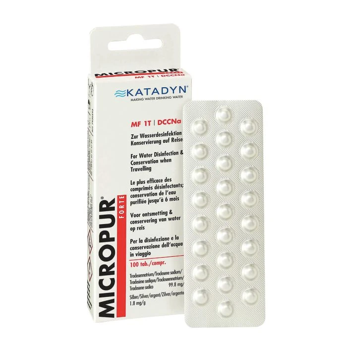 Anwendung: Eine Micropur Forte Tablette auf einen Liter klares Wasser dosieren; 10 Minuten warten, bis sich die Tablette aufgelöst hat; gut schütteln; vor Gebrauch weitere 20 Minuten einwirken lassen. Bei sehr kaltem Wasser oder bei Verdacht auf Giardia-Zysten das Wasser erst nach einer Einwirkzeit von 2 Stunden trinken. Mit Micropur Antichlor kann der leichte Chlorgeschmack innerhalb von 3 Minuten neutralisiert werden.
