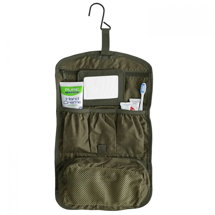 Viel Stauraum und ein kleines Packmaß für alle wichtigen Hygieneartikel – das ermöglicht die britische Waschzeugtasche von Mil-Tec.
