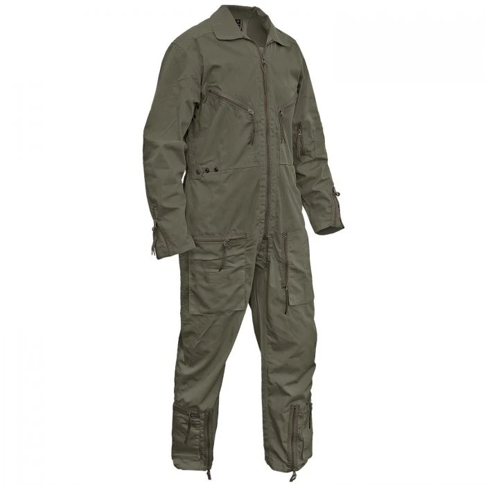 Die Bundeswehr Fliegerkombi besticht vor allem durch ihren enormen Stauraum. Sie besitzt zwei Brusttaschen mit Reißverschluss, zwei aufgesetzte Beintaschen mit Reißverschluss, zwei seitliche Unterschenkeltaschen mit Reißverschluss, eine Mehrzwecktasche auf dem linken Oberarm, zwei Eingrifftaschen und zwei Eingriffe zu den Gesäßtaschen mit Reißverschluss. Geschlossen wird der Einteiler durch einen 2-Wege-Frontreißverschluss. Die Ärmelabschlüsse und Beinenden sind mit einem Reißverschluss versehen. Die Taillenweite ist durch Druckknöpfe verstellbar und Belüftungslöcher im Achselbereich sorgen für eine gute Luftzirkulation.