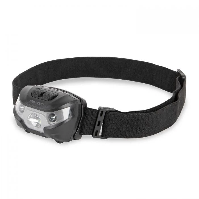 Die praktische Kopflampe Cree XPE von Mil Tec besitzt ein elastisches, verstellbares Kopfband, das an jede Kopfgröße optimal angepasst werden kann sowie verschiedene Leuchtmodi und LED-Farben. Der Leuchtwinkel ist ebenfalls verstellbar.