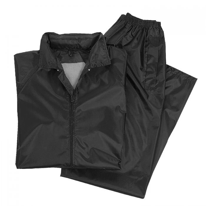 Dieser bequeme wind- und wasserdichte Regenanzug besteht aus Hose und Jacke. Die Hose kann man ganz einfach drüberziehen und durch den Gummizug am Bund und den regulierbaren Beinabschluss kann er bequem in der Weite angepasst werden. Die Jacke wird am Rücken belüftet, im Kragen ist eine Kapuze eingefasst und sie besitzt einen verstellbaren und verdeckten Frontreißverschluss. Außerdem kann sie durch den Bundzug und die regulierbaren Bündchen an den Ärmelenden beliebig in der Weite verstellt werden.