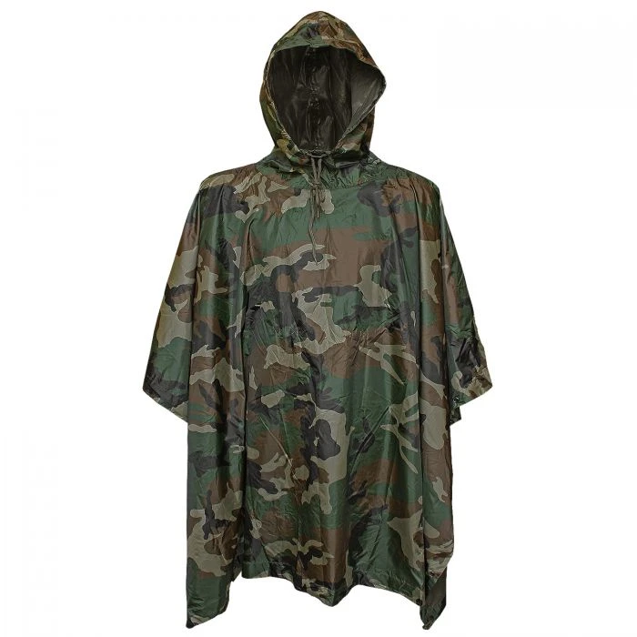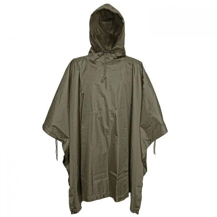 Kleines Packmaß und hoher Schutz in einem. Der durchdachte und sehr funktionelle Poncho Premium Ripstop von Mil-Tec aus besonders reißfestem Rip-Stop-Material ist ein vielseitiges Ausrüstungsstück und kann dank seiner großen Fläche als Nässeschutz, Schutzplane, Abdeckplane, Packsack und vieles mehr, verwendet werden. Der Poncho mit einer Wassersäule von 5000mm ist ausgebreitet ca. 150 x 210 cm groß und kann seitlich durch Druckknöpfe und an den Enden durch Schnüre (Spannösen) geschlossen werden. Die Druckknöpfe besitzen ihre Funktion beidseitig, so dass man leicht und schnell zwei Ponchos verbinden und beispielsweise als Notzelt benutzen kann. Für optimalen Schutz bei Wind und Wetter besitzt er eine große Kapuze mit Tunnelzug sowie einen Schnürzug in der Taille.