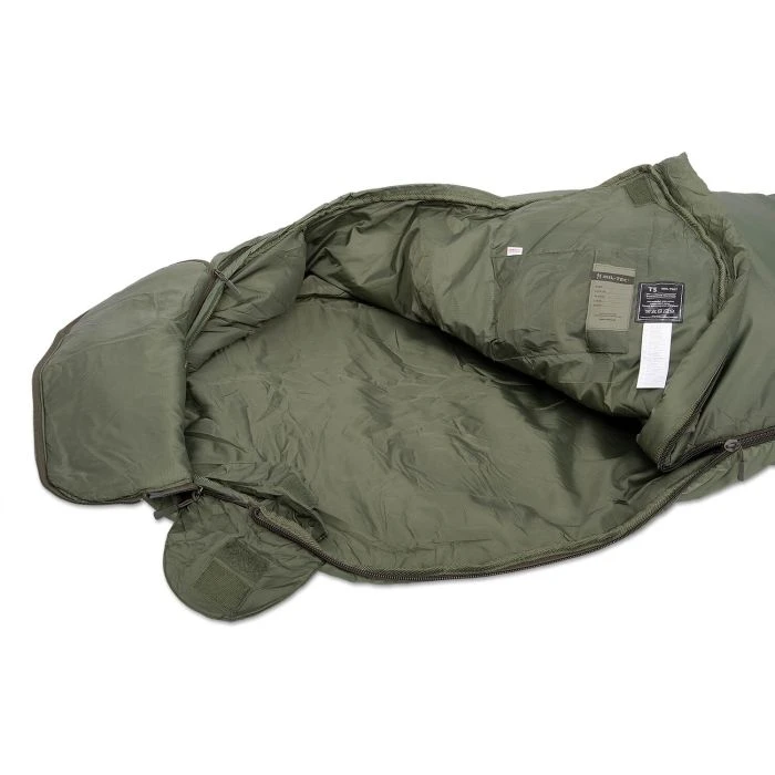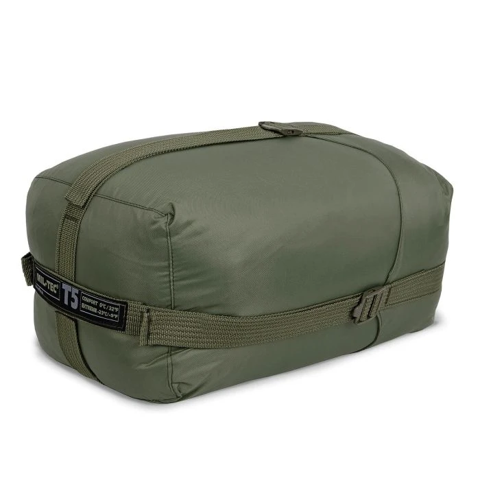 Der Schlafsack Tactical 5 von Mil-tec ist ein Mumienschlafsack mit hervorragender Wärmeleistung bei gleichzeitig geringem Gewicht. Der Schlafsack lässt sich bemerkenswert gut komprimieren, was das Packmaß sowie den Transport positiv beeinflusst. Besonders ist hier auch die Konstruktion des Kopfbereiches. Dieser kann komplett geschlossen werden. Die teflonbeschichtete Unterseite des Tactical 4 verhindert ein Durchnässen.