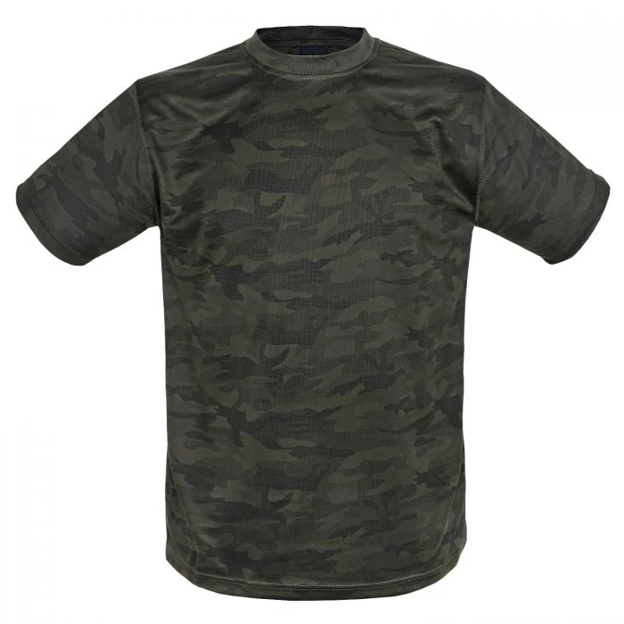 Das sportlich geschnittene Camouflageshirt aus Meshmaterial ist besonders atmungsaktiv und schnell trocknend und somit bestens für sportliche Aktivitäten geeignet. Das luftige Material lässt sich sehr angenehm tragen.