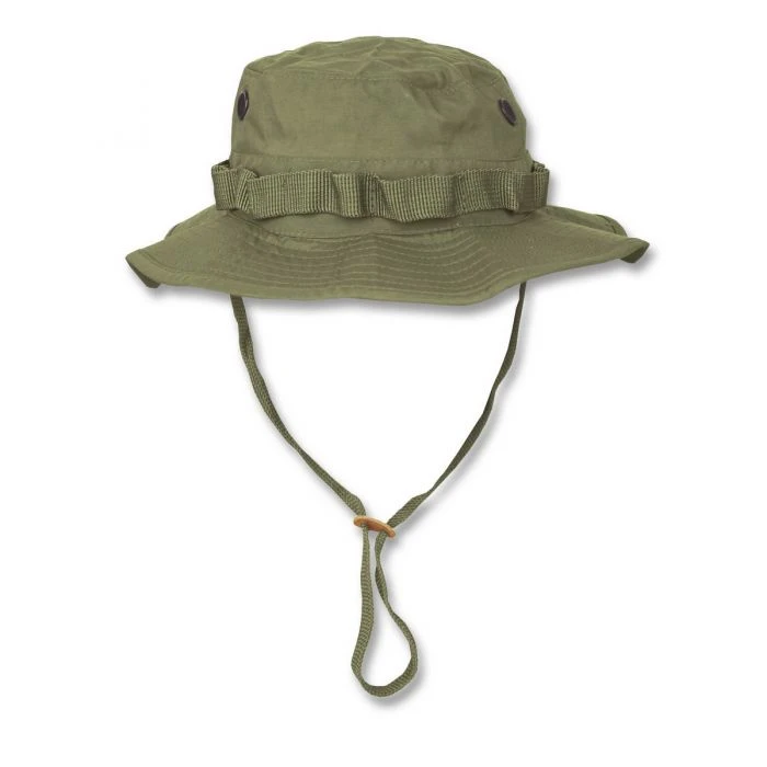 Der wasserdichte GI Boonie bietet nicht nur Schutz vor Regen, sondern schützt Ihren Kopf genauso gut vor der Sonne. Der Hut hat eine Polyurethan Membran und zwei Lüftungsösen, was ihn besonders atmungsaktiv macht. Das Kinnband besitzt einen Stopper, womit der Hut optimal am Kopf befestigt werden kann. Die umlaufende Tarnschlaufe rundet das Design ab.