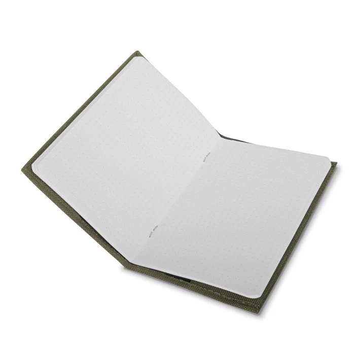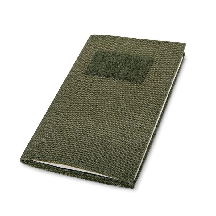 Kleines, feines Notizbuch mit einem Einband aus Cordura Gewebe. Die 32 Blätter sind punktiert und ermöglichen Einträge in gerader Linie. Zusätzlich sind die Seiten perforiert und können bei Bedarf leicht heraus getrennt zu werden. Der Umschlag ist mit einer Flauschfläche versehen, zum Anbringen von kleinen Patches oder Abzeichen mit einer Klettrückseite.