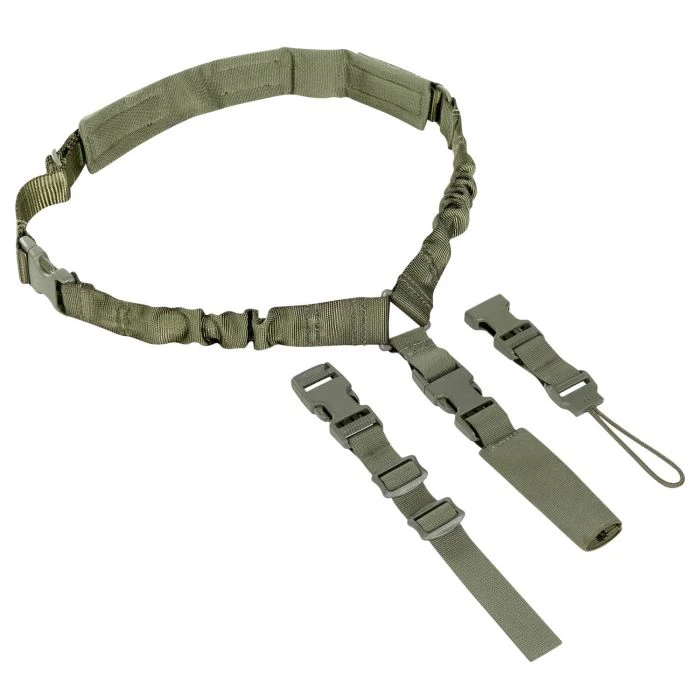 Der TT Single Multipurpose Sling von Tatonka ist ein gepolsterter Trageriemen mit diversen Befestigungsoptionen. Per Steckschließe kann entweder ein Waffenhaken, ein Band für Riemenösen oder eine 3-mm-Reepschnur für Kameras (2 Strings à 3 mm Durchmesser) angebracht werden. Die maximale Belastung der Kameraaufhängung beträgt 85 Kilogramm, und sie sollte ausgetauscht werden, wenn der innere weiße Kern sichtbar wird.