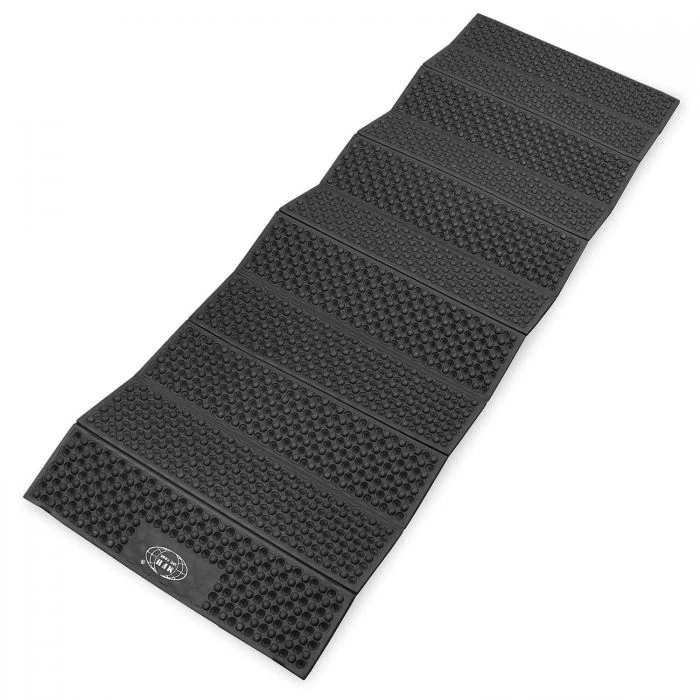 Die spezielle Noppenstruktur der Matte sorgt für eine hervorragende Isolation und Rutschfestigkeit, zudem kann die Isomatte zu einem kompakten Sitzkissen zusammengefaltet werden. Die zwei elastischen Pack-Gummibänder sorgen für einen einfachen Transport, was die Isomatte zu einem idealen Begleiter auf Outdoor-Touren, beim Camping oder im Urlaub macht.