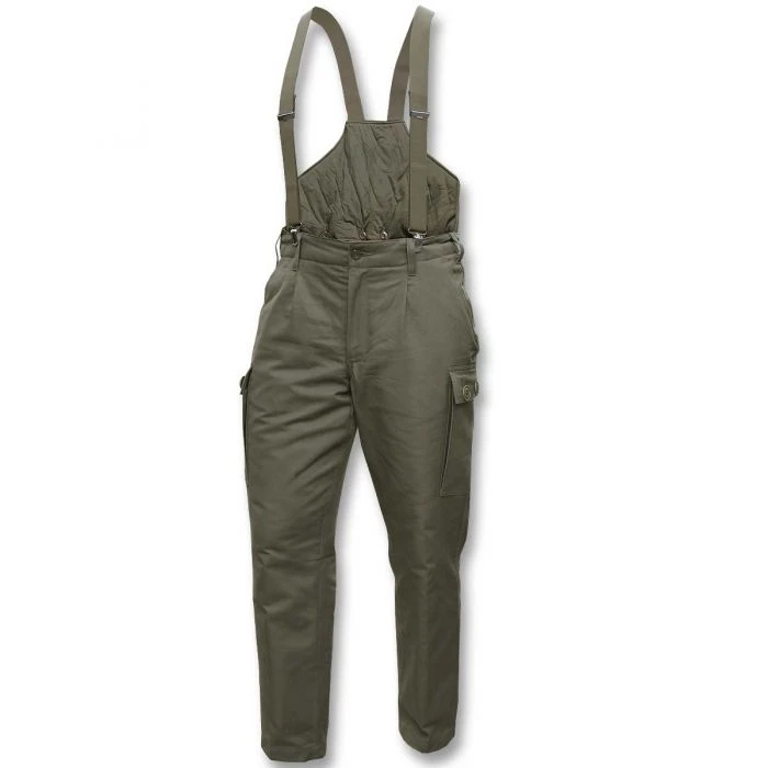 Diese hochwertig verarbeitete und warm gefütterte Thermohose von Leo Köhler- dornenfest und nach Öko-Standart gefertigt – bietet optimalen Kälteschutz. Gerader Schnitt, zwei Einschubtaschen, eine Gesäßtasche mit Kopfverschluss sowie zwei aufgesetzte Beintaschen mit bandgenähten Knöpfen welche sich auch einhändig und/oder mit Handschuhen optimal Öffnen und Schließen lassen. Der ausknöpfbare, gefütterte Rückenlatz mit verstellbaren Hosenträgern bietet nicht nur bei sitzender Tätigkeit optimalen Wärmeschutz. Das macht die Hose unter anderem zum perfekten Begleiter auf der Jagd. Die Beinabschlüsse lassen sich durch die eingearbeitete Schnürung in der Weite regulieren.
