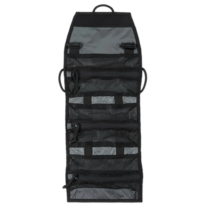 Trip Roll organisiert alles, was du auf Reisen dabei haben musst. Kosmetika, Ladegeräte, Kabel, Akkus oder Powerbank können so gut sortiert und voneinander getrennt platzsparend aufbewahrt und transportiert werden. Auf der Innenseite befinden sich drei Netztaschen und elastische Schlaufen. An der Außenseite befindet sich ein Klettbereich, der die Befestigung am Rucksack oder Ähnlichem möglich macht. Für einen leichten Zugriff auf alle deine Sachen kann die Tasche an drei Kordelschlaufen aufgehangen werden.