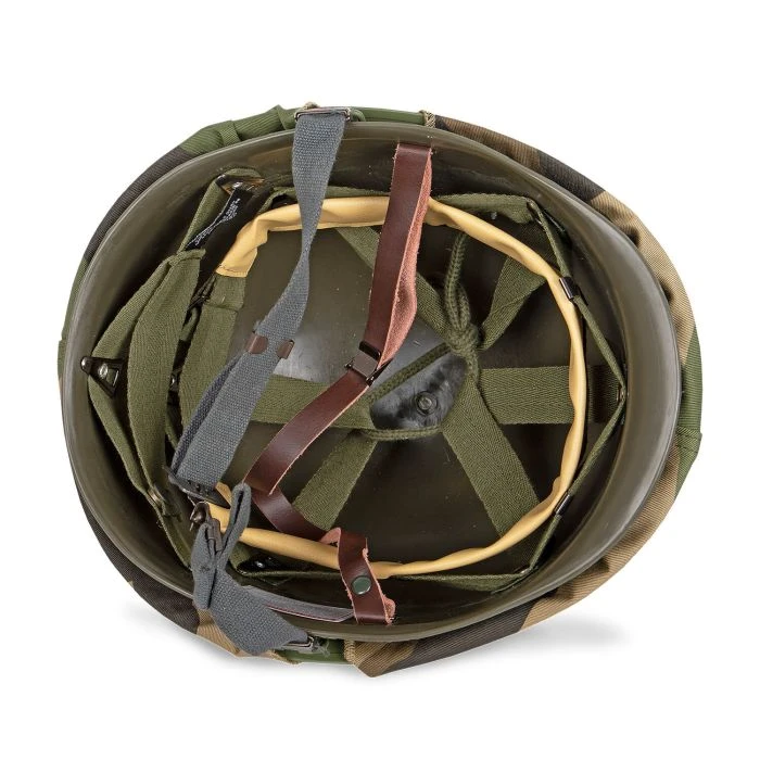 Der US Helm M1 war über 40 Jahre der Standard für das US-Militär. Der massive Stahlhelm kommt mit Innenhelm aus Kunststoff sowie Tarnbezug und Helmgummiband und ist lediglich für den Einsatz als Dekoration oder Requisite gedacht.