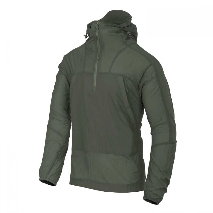Das Windrunner Windshirt von Helikon-Tex hat ein besonders geringes Gewicht und kann sehr klein zusammengefaltet werden, wodurch er kaum Platz wegnimmt und in jedes Gepäckstück passt. Das Windshirt besteht aus ultraleichtem, dicht gewebtem Nylongewebe und schützt vor Wind. Wenn man es regelmäßig imprägniert, schützt es auch vor leichtem Regen. In den Achselhöhlen befinden sich Mesh-Belüftungslamellen, welche die Luftzirkulation ermöglichen. Eine große Kanaltasche sowie zwei kleine Innentaschen bieten Stauraum für Smartphones oder andere kleine Gegenstände.